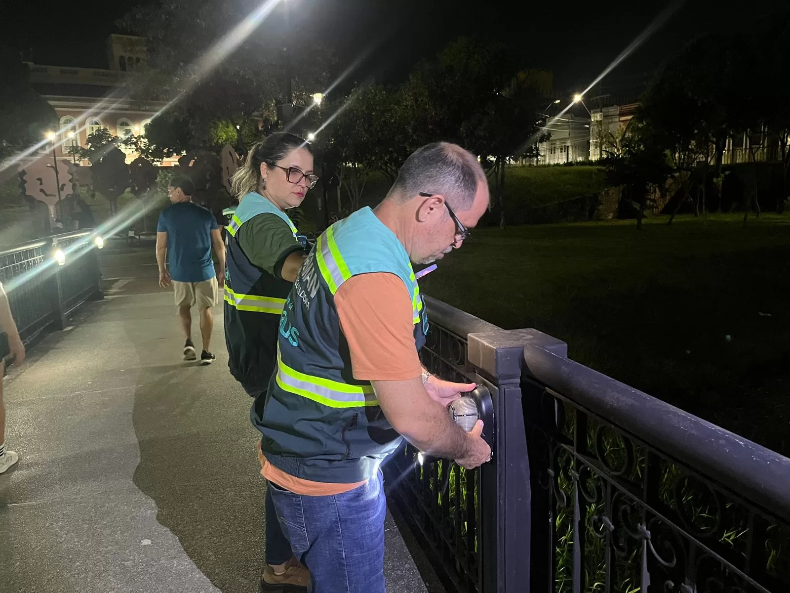 Equipes de iluminação pública da Agência Reguladora dos Serviços Públicos Delegados do Município de Manaus (Ageman) reforçaram a fiscalização noturna no centro histórico de Manaus.