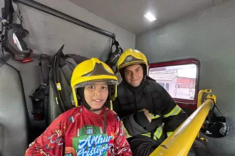 Bombeiros do Amazonas visitam menino com autismo em festa de nove anos no bairro Grande Vitória, em Manaus