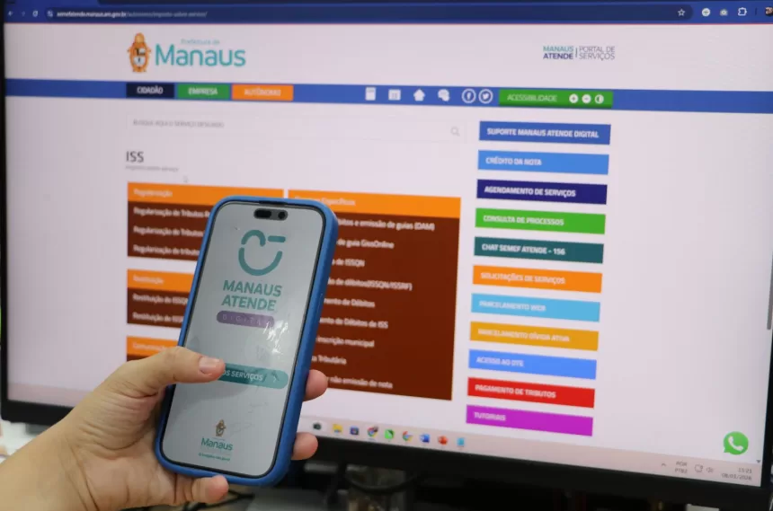 Profissionais autônomos e sociedades uniprofissionais de Manaus podem acessar notificações e guias do ISS Fixo 2026 pelo aplicativo e portal.