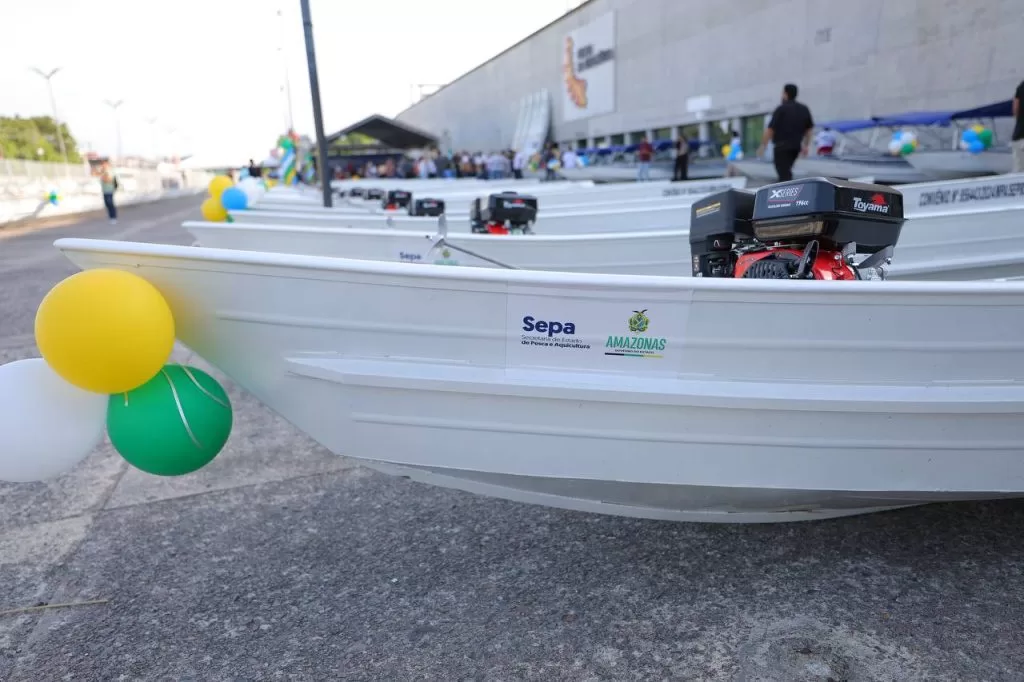 A iniciativa do Governo do Amazonas alcança 55 mil pescadores em todo o estado. No total, foram entregues 115 canoas, 115 motores rabetas, 14 lanchas cobertas com motor de popa, 14 computadores com impressoras, 500 filtros e 10 aeradores. O reforço garante melhores condições de transporte do pescado e fortalece a cadeia produtiva em todas as regiões do estado.