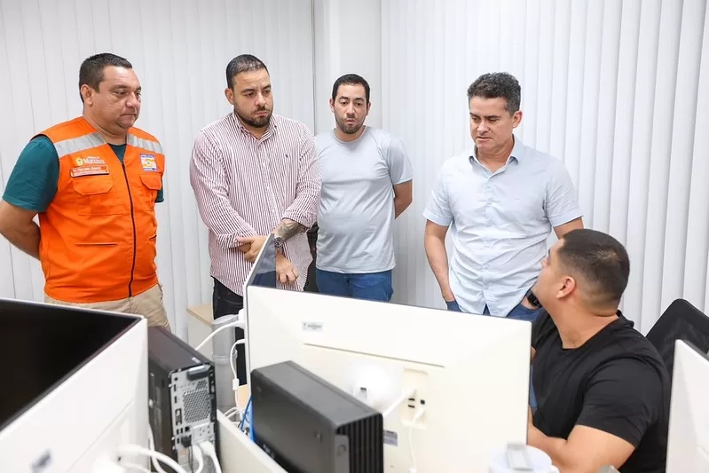 Mais tarde, ao lado do secretário municipal de Segurança Pública e Defesa Social, Alberto Siqueira, e do secretário-executivo da Defesa Civil Municipal, coronel Lima Júnior, David Almeida mostrou o monitoramento e o direcionamento das equipes de campo para atendimento às ocorrências.