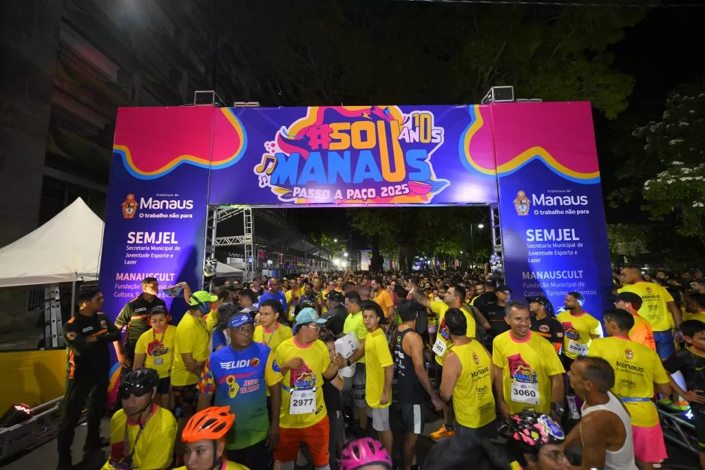 A Prefeitura de Manaus, por meio da Secretaria Municipal de Juventude, esporte e lazer (Semjel), realizou, na noite desta quinta-feira, 4/9, a 1ª edição da corrida “#SouManaus”, evento esportivo que reuniu mais de 6 mil pessoas entre atletas inscritos e corredores “pipoca”. A prova fez parte da programação especial que celebra os 10 anos do maior festival de artes integradas gratuito do Brasil, o “#SouManaus Passo a Paço 2025”.