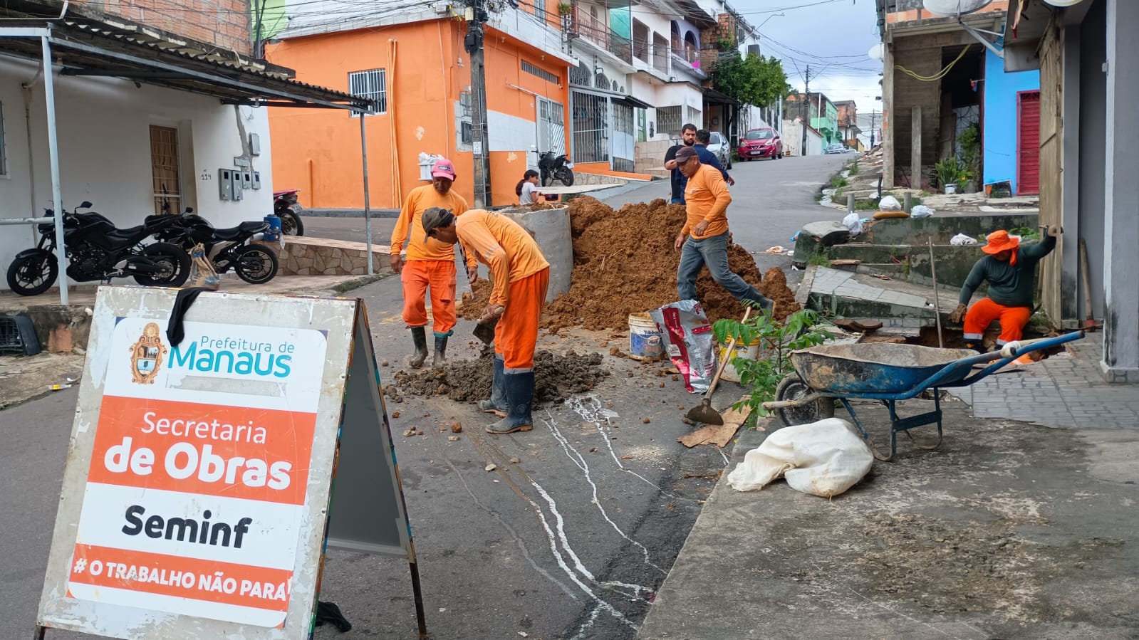 Na zona Sul, a equipe do distrito de obras da área foi deslocada até o bairro Raiz, na rua 3,  para recuperar mais uma REDE de drenagem rompida. Já no bairro Coroado, zona Leste, uma antiga tubulação de águas pluviais na rua Papiro segue em obra de manutenção, com a substituição de 50 metros de tubos da galeria subterrânea.