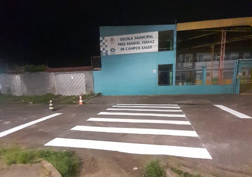 Também houve reforço de sinalização em frente a unidades de ensino na zona Norte, como na rua 87, no conjunto Canaranas, e na rua das Colhereiras, ambas no bairro Cidade Nova, priorizando a segurança de estudantes e da comunidade escolar.