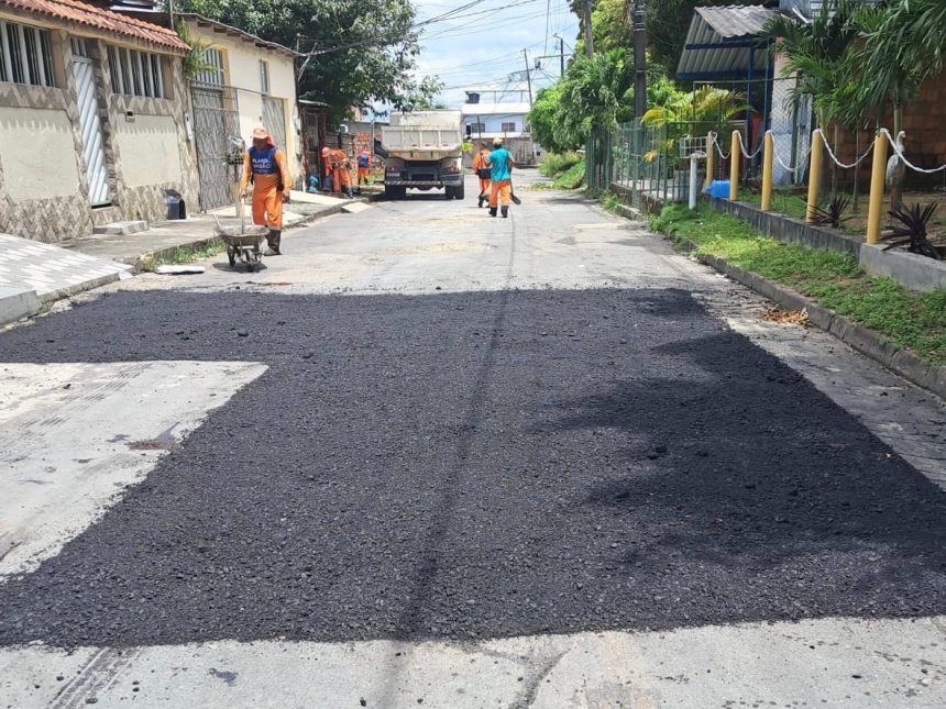 Prefeitura de Manaus executa obras de recuperação asfáltica na rua Conservatória, bairro Cidade Nova, para melhorar o tráfego e atender demandas locais.