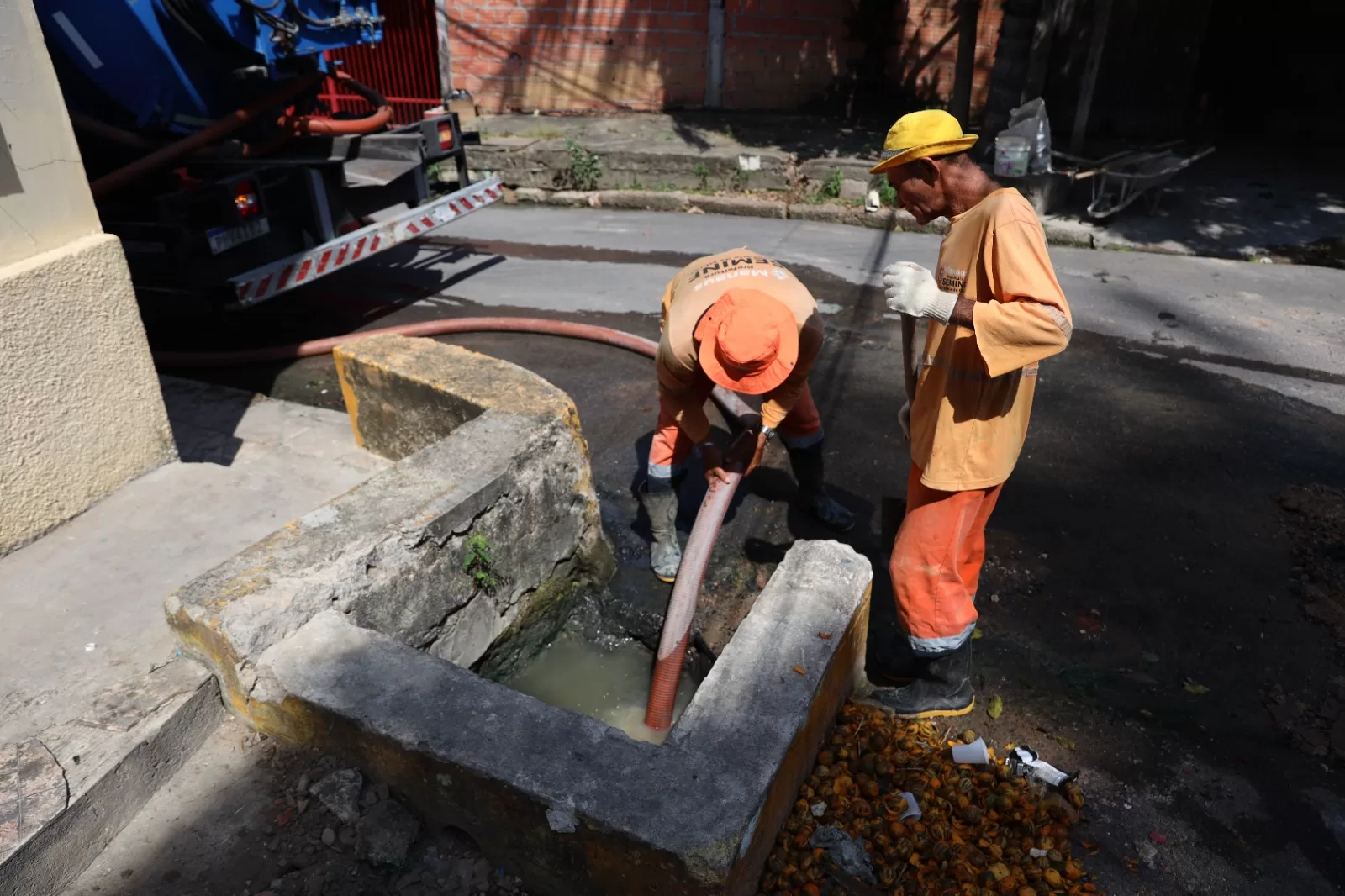 A Prefeitura de Manaus, por meio da Secretaria Municipal de infraestrutura (Seminf), intensificou, nesta quarta-feira, 3/9, os serviços de manutenção do sistema de drenagem no bairro Raiz, zona Sul da cidade. Na rua Natal, uma equipe especializada utilizou o caminhão hidrojato, equipamento de alta pressão que remove resíduos acumulados para desobstruir uma caixa coletora fundamental para o escoamento das águas pluviais.