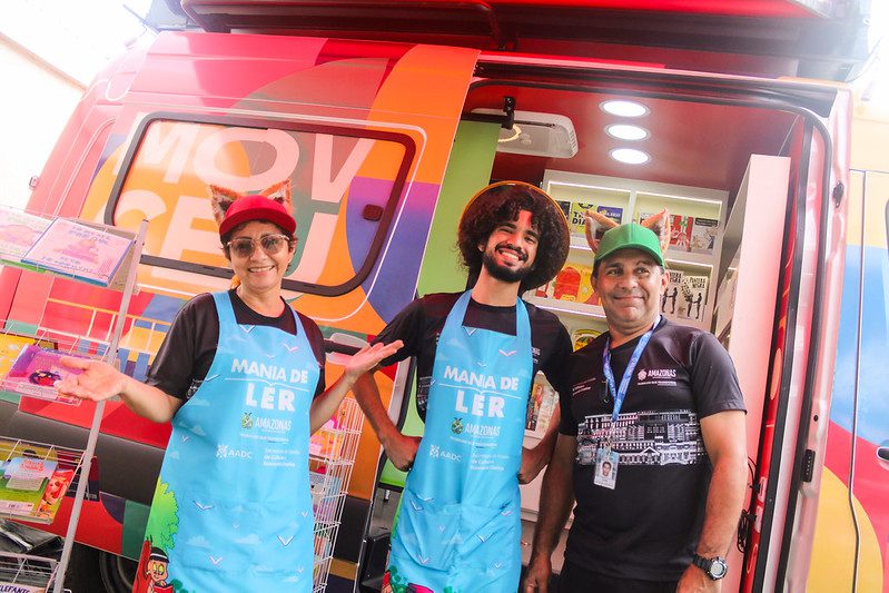 Secretaria de Estado de Cultura e economia criativa participou do Governo Presente em Japiim com oferta de produtos, leitura e atividades para crianças.